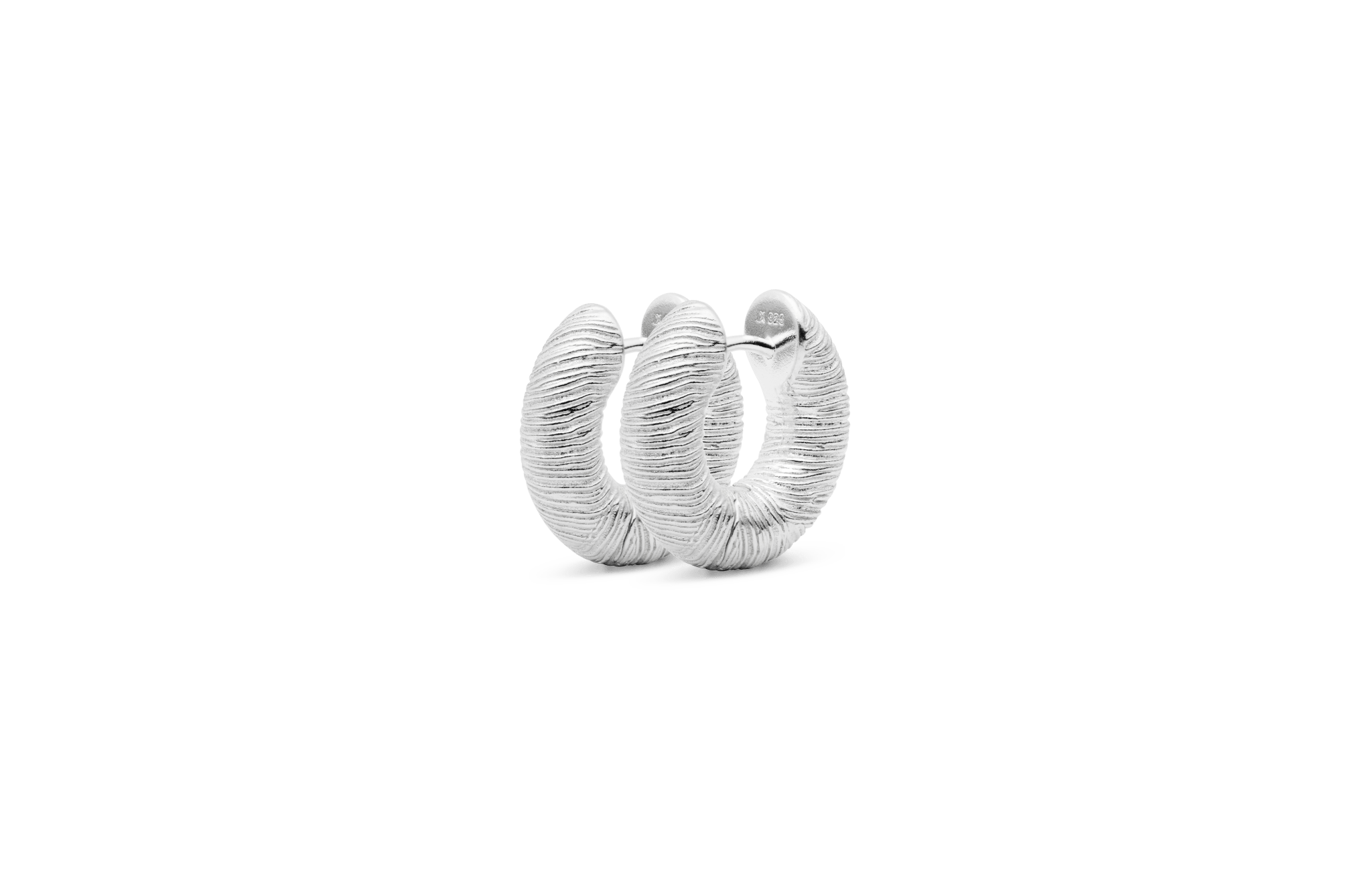 Ohrringe mit strukturierter Oberfläche, entworfen vom Künstler Martin Brachér. Die Ohrringe sind ein Symbol für die Schönheit der Natur und für echte Momente.Schmuck in limitierter Auflage des Künstlers Martin Brachér.Die Ohrringe sind aus 100% recyceltem 925er Sterlingsilber gefertigt.Die Ohrringe haben einen Innendurchmesser von 7 mm und einen Außendurchmesser von 17 mm.Alle unsere Schmuckstücke sind auf der Innenseite mit 925 IX gestempelt, was unser professioneller Namensstempel ist, der von der dänischen Edelmetallkontrolle registriert ist.