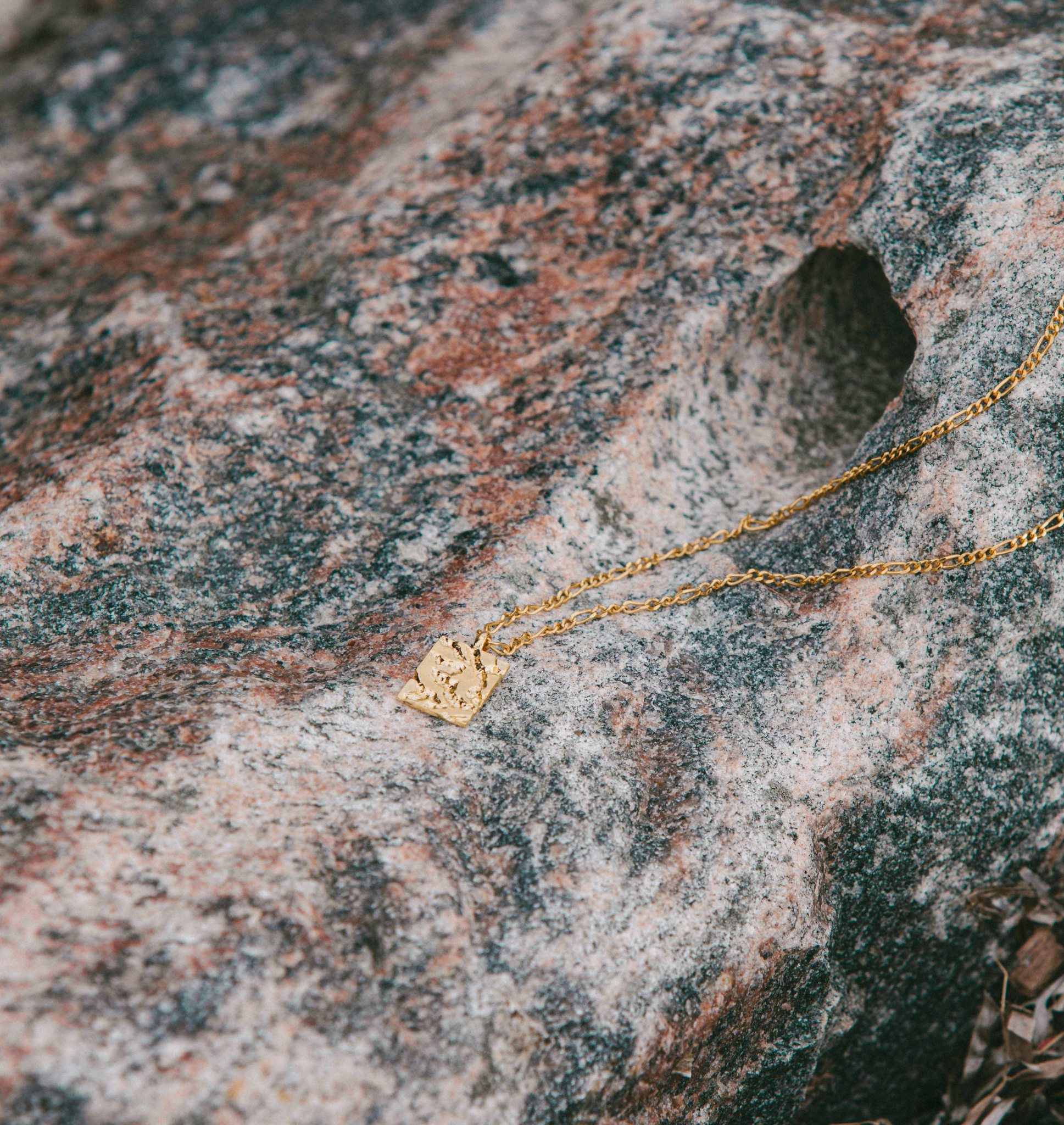 Die Designs in unserer Rustic-Kollektion sind von der Natur inspiriert – insbesondere von Bergen und Felsen sowie von den schönen Strukturen im Sand. • Der Anhänger misst 13 x16 mm.• Der Schmuck ist aus 100% recyceltem und mit 22 Karat vergoldetem 925er Sterlingsilber gefertigt. • Alle unsere Schmuckstücke tragen auf der Innenseite den Stempel 925 IX. Hierbei handelt es sich um unseren offiziellen Prüfstempel, der bei der dänischen Edelmetallkontrolle registriert ist.